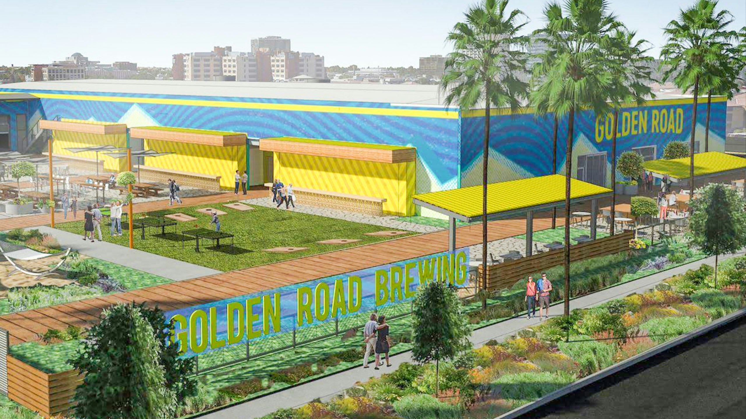 In November 2017, the Big City crew painted environmental graphics on this building exterior at Golden Road Brewing in Anaheim, Orange County, CA.